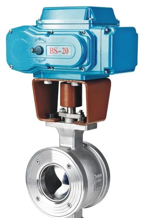 電動V型球閥V型切口球面板在增大調(diào)節(jié)比的同時,在截流時對密封環(huán)還有剪切作用,因此適用于要求大調(diào)節(jié)比的控制系統(tǒng),以及對含纖維質(zhì)流體、料漿類流體的控制。