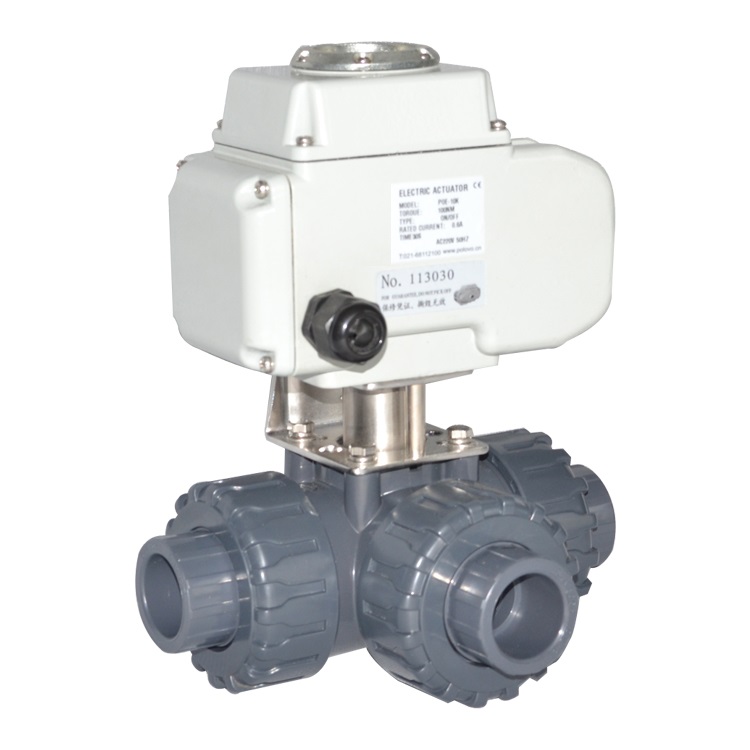 UPVC電動三通球閥的球體分L型和T型,利用電動執(zhí)行器帶動球體經(jīng)90度的旋轉(zhuǎn)動作來達到換向的控制目的,或經(jīng)180度的旋轉(zhuǎn)動作來達到換向與分流合流的控制目的。執(zhí)行器與閥體的采用直連式,減少了發(fā)生故障的機率。UPVC電動三通閥的密封性能優(yōu)良,流量系數(shù)大,流阻系數(shù)小,結(jié)構(gòu)簡單,使用壽命長,便于維修。配用電動執(zhí)行機構(gòu),電動球閥分開關(guān)式和調(diào)節(jié)式兩種控制方式,可以做防爆。