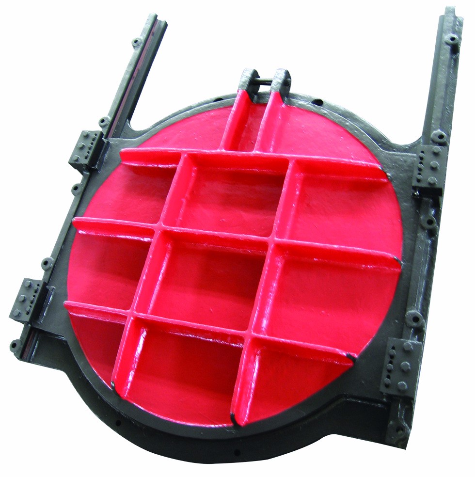 閘板是直接承受水壓力的擋水構(gòu)件, 閘框是閘板四周的支承構(gòu)件,同時(shí)也是閘板上下運(yùn)動(dòng)的滑道。鑄鐵閘門由啟閉機(jī)帶動(dòng)螺母轉(zhuǎn)動(dòng)啟閉,在梯形螺紋作用下使絲桿帶動(dòng)閘門門體上下運(yùn)行, 滑道以外部分鑲嵌于閘墩及閘底的二期混凝土中, 將閘板所承受的水壓力均勻地傳遞到閘墩及閘室底部。閘框迎水面四周與閘板框四周背水面接觸處經(jīng)機(jī)械精制、 加工。刨光后平直光滑、 貼合嚴(yán)密, 使結(jié)合面、 止水面與運(yùn)動(dòng)滑道合三為一。在啟閉機(jī)作用下, 當(dāng)閘門啟閉運(yùn)行時(shí), 緊閉斜鐵和閘框滑道確保閘門的縱橫運(yùn)行軌跡, 在水壓力和緊閉斜鐵的雙重作用下, 確保閘板運(yùn)行平穩(wěn) , 使閘板與閘框滑道緊密貼合, 從而達(dá)到有效止水的目的。